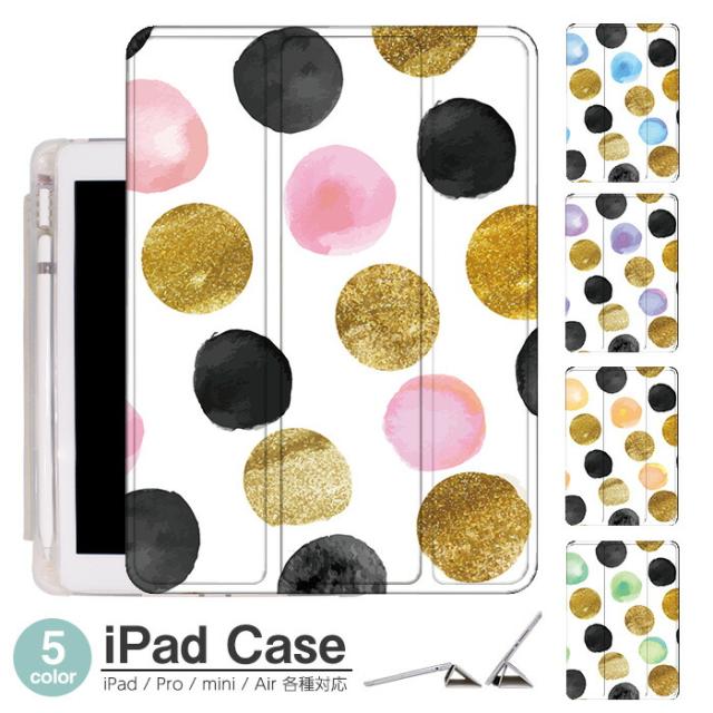 iPad ケース ペンシル収納 背面マット iPad mini6 ケース 2021 新型10.2インチ iPad ケース 第9世代 iPad Air5 ケース 10.2インチ ipad ケース 第8世代 iPad air4 ケース ペン収納 三つ折り保護カバー 軽量 iPad Air5 カバー Apple Pencil 水彩 ドット柄