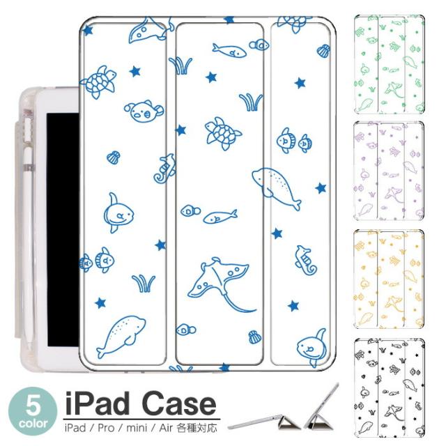 iPad ケース ペンシル収納 背面マット iPad mini6 ケース 2021 新型10.2インチ iPad ケース 第9世代 iPad Air5 ケース 10.2インチ ipad ケース 第8世代 iPad 2020 スマートカバー iPad air4 ケース ペン収納 三つ折り保護カバー 軽量 iPad Air5 カバー Apple Pencil 水族館 魚