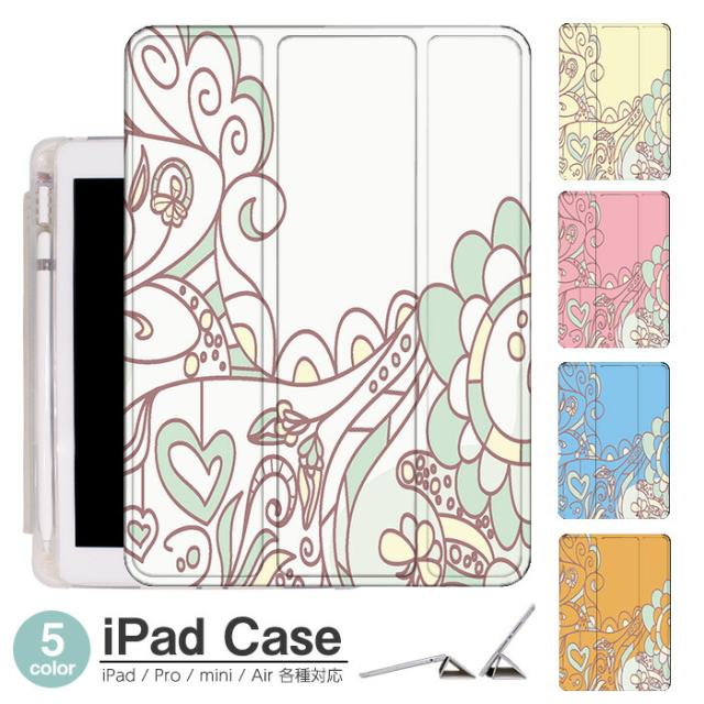iPad ケース ペンシル収納 背面マット iPad mini6 ケース 2021 新型10.2インチ iPad ケース 第9世代 iPad Air5 ケース 10.2インチ ipad ケース 第8世代 iPad 2020 スマートカバー iPad air4 ケース ペン収納 三つ折り保護カバー 軽量 iPad Air5 カバー Apple Pencil 花 世界