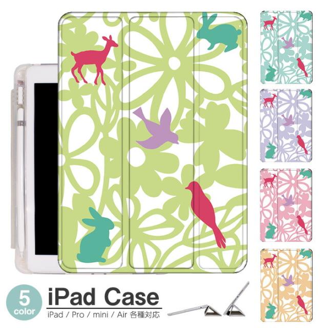 iPad ケース ペンシル収納 背面マット iPad mini6 ケース 2021 新型10.2インチ iPad ケース 第9世代 iPad Air5 ケース 10.2インチ ipad ケース 第8世代 iPad air4 ケース ペン収納 三つ折り保護カバー 軽量 iPad Air5 カバー Apple Pencil 花 動物 シルエット