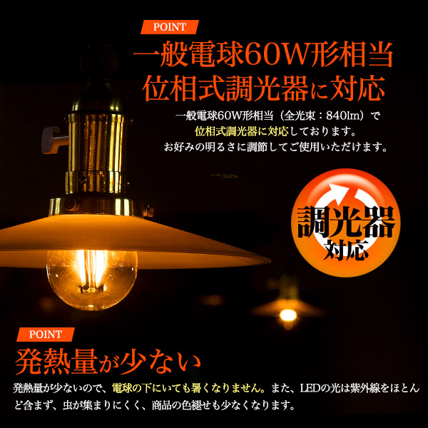 LEDランプ レトロな輝き フィラメント型 一般電球 60W形 E26 クリア電球 7.0W LEDライト 調光器対応 LED電球 電球色 2700k 840lm 省エネ エジソン電球 口金E26 e26 60W形相当 電球 お店 店舗 エコ 節電 節税 店舗照明 電設資材 電気配線用品 新生活 お部屋模様替え
