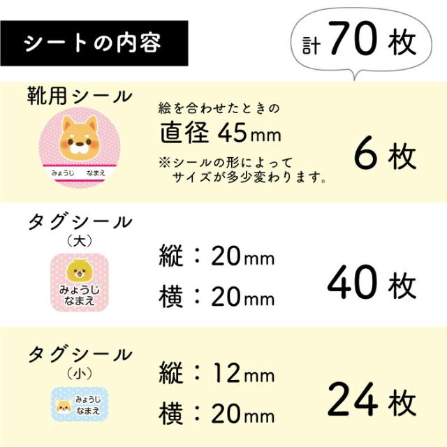 □商品サイズ:(靴用シール直径約45mm・タグシール大縦横20mm・タグシール小縦12×横20mm)