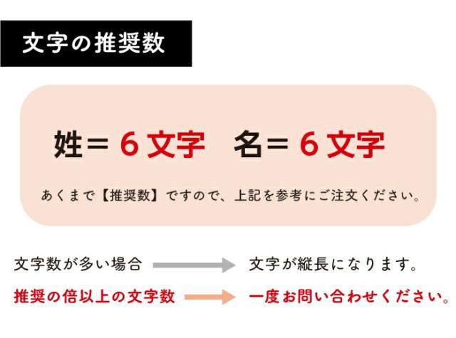 文字の配置等は当店規定のフォーマットで行っております。文字間など細かい部分の調整はお受けいたしかねます。