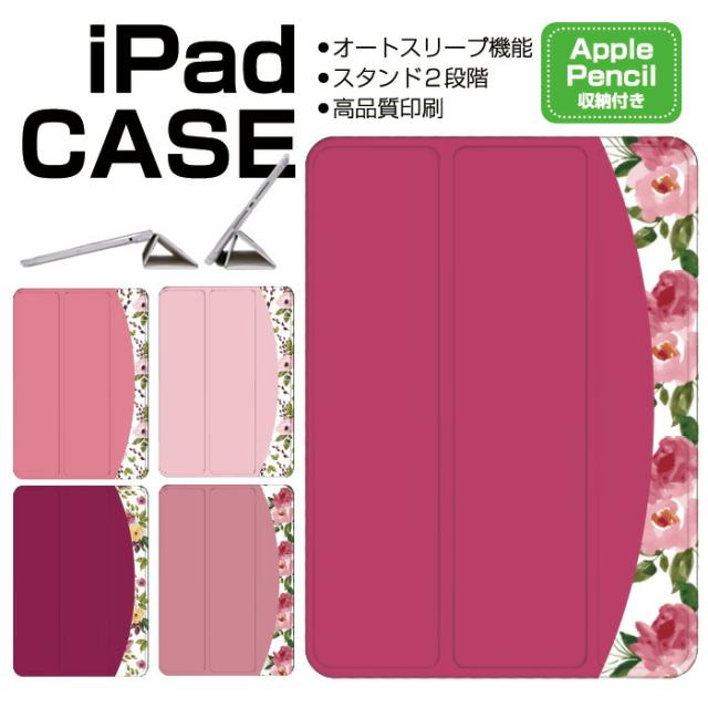 iPad ケース ペンシル収納 背面マット iPad mini6 ケース 2021 新型10.2インチ iPad ケース 第9世代 iPad Air5 ケース 10.2インチ ipad ケース 第8世代 iPad air4 ケース ペン収納 三つ折り保護カバー 軽量 iPad Air5 カバー Apple Pencil 花柄 ピンク