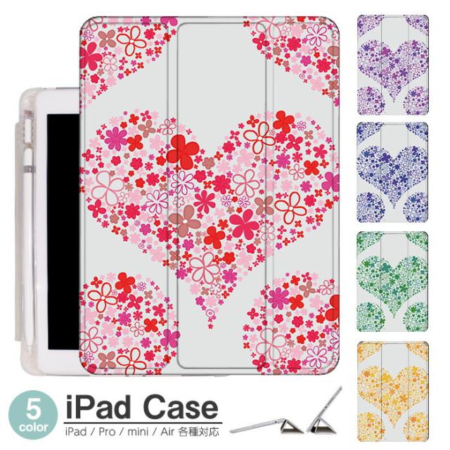 iPad ケース ペンシル収納 背面マット iPad mini6 ケース 2021 新型10.2インチ iPad ケース 第9世代 iPad Air5 ケース 10.2インチ ipad ケース 第8世代 iPad air4 ケース ペン収納 三つ折り保護カバー 軽量 iPad Air5 カバー Apple Pencil 花で大きなハート