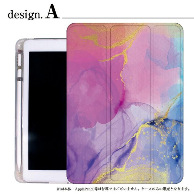 iPad ケース ペンシル収納 背面マット iPad mini6 ケース 2021 新型10.2インチ iPad ケース 第9世代 iPad Air5 ケース 10.2インチ ipad ケース 第8世代 iPad air4 ケース ペン収納 三つ折り保護カバー 軽量 iPad Air5 カバー Apple Pencil カラフルマーブル