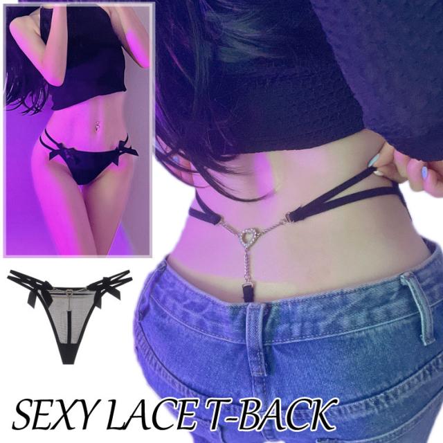 Tバック キラキラ金具 セクシー 滑らか シースルー 勝負下着 大きいリボン 上品 オシャレ ランジェリー エレガント フィット セール
