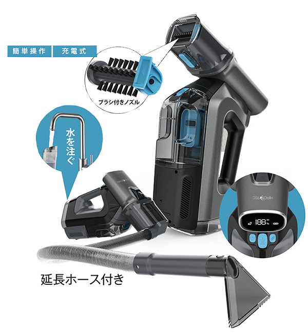 スチームクリーナー バキュームクリーナー コードレス スプレーバキュームクリーナー 布製品なら何でも水洗浄 HDL-SVC01
