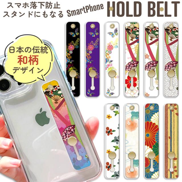 スマホ 落下防止バンド 和柄 和風花柄 スマホベルト おしゃれ スマホリング フラワー 全機種対応 蝶 扇 菊紋 沙綾形 桜