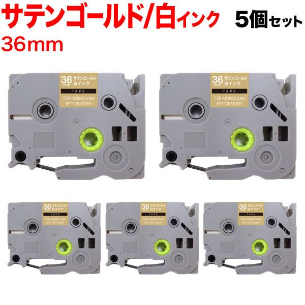 【送料無料】ブラザー用(Brother用) ピータッチ 互換 テープ (36mm / サテンゴールド(つや消し)テープ/白インク) お得な5個セット