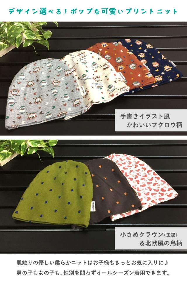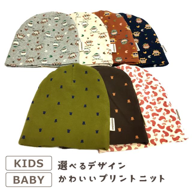 キッズ ニット帽 デザイン選べる ベビー 子供 ニットキャップ 可愛いプリント 鳥柄 王冠柄 ニット帽子 ビーニー kids-220 赤ちゃん 伸びる 小さい帽子 男の子 女の子 秋冬 おしゃれ アニマル 0歳 1歳 2歳 3歳 お出かけ ギフト プレゼント