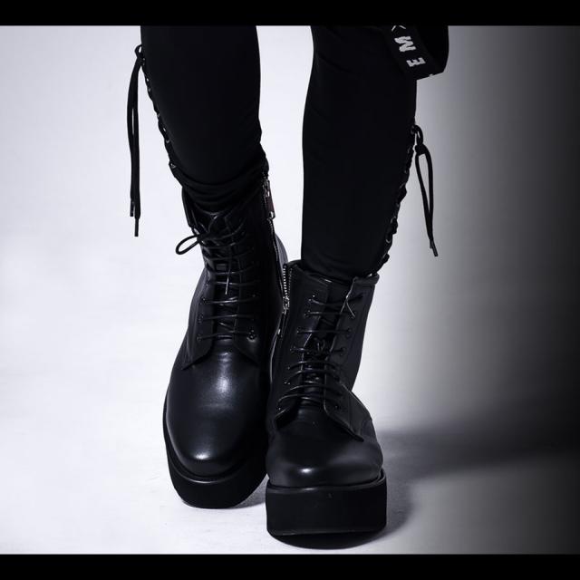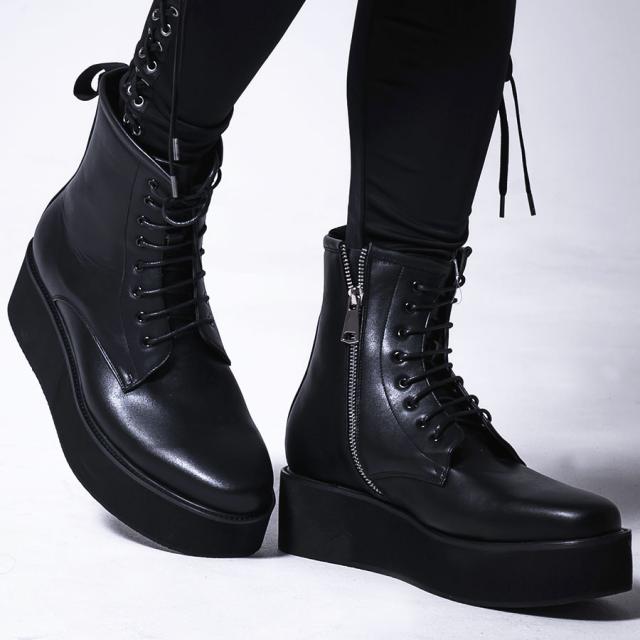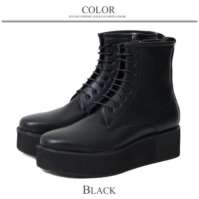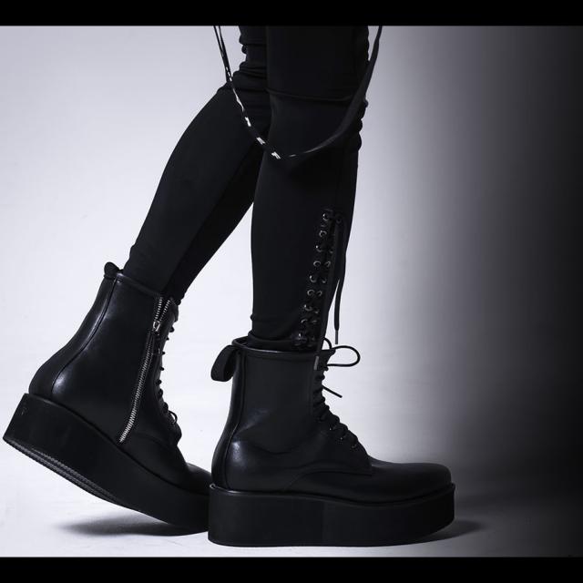 SB Select シルバーバレットセレクト 厚底サイドジップレースアップブーツ 即日発送 厚底ブーツ ラバーソール メンズ 靴 シューズ ブラック V系 ヴィジュアル系 ビジュアル系メンズ靴 PUレザー [EPB702-1]
