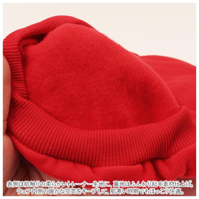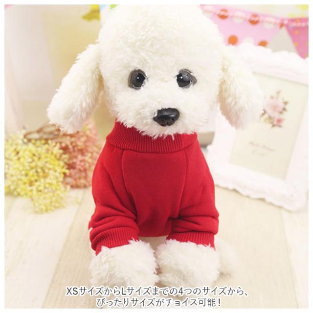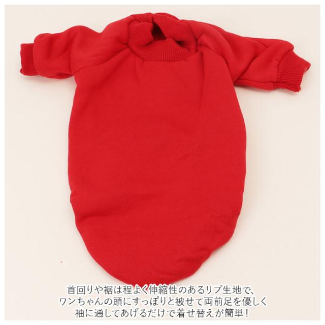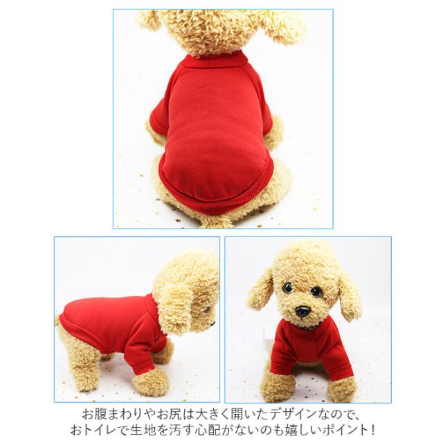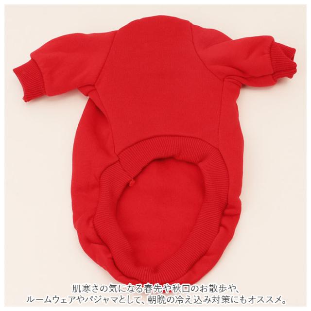 | 商品説明 | ・毎日のお散歩や、ルームウェアに最適なシンプルデザイン。男の子も女の子も可愛く着こなせる「ペットウェア」が新登場! ・表側は肌触りの柔らかいトレーナー生地に、裏地はふんわり起毛素材仕上げ。ウェア内側の暖かな空気をキープして、肌寒い時期でもほっこり快適。 ・首回りや裾は程よく伸縮性のあるリブ生地で仕上げてあるため、ワンちゃんの頭にすっぽりと被せて、両前足を優しく袖に通してあげるだけで着せ替えが簡単! ・お腹まわりやお尻は大きく開いたデザインなので、おトイレで生地を汚す心配がないのも嬉しいポイント! ・XSサイズからLサイズまでの4つのサイズから、ぴったりサイズがチョイス可能!超小型犬から、胴回り約41cm・体重5kg程度までの小型のワンちゃんに最適なサイズ感。小さなサイズはネコちゃんにもオススメ。 ・肌寒さの気になる春先や秋口のお散歩や、ルームウェアやパジャマとして、朝晩の冷え込み対策にもオススメ。 |