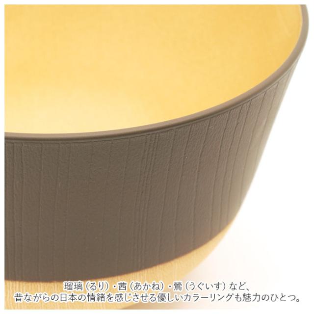| 商品説明 | ・ナチュラルな木目の風合いと日本伝統の色合いが奏でるハーモニー。「やさしい彩り」シリーズに、「抗菌・飯椀」が仲間入り。 「やさしい彩り」シリーズは、明るい木目調の樹脂素材を日本古来の風雅な色彩で仕上げた和食にも洋食にも映えるテーブルウェア。 ・温かいお蕎麦やうどん、親子丼などのどんぶりご飯を一人前盛り付けるのにぴったり。毎日の食卓にすんなり馴染む、小ぶりなどんぶり椀。 ・軽くて丈夫なPET・ABS樹脂素材表面に、まるで天然木の木肌のようなナチュラルな風合いを表現することで、温かみのある食卓をふんわりと演出。 ・電子レンジでの温めや、食器洗浄機でのお手入れにもしっかり対応。さらに、いつでも清潔に使える抗菌仕様の塗装を施しているので、毎日の家事に忙しいママさんの強い味方!(※500W〜600Wの電子レンジをご使用の際は、1分以上の加熱はしないでください。) ・上下にふわっと重ねてスタッキング収納ができるから、食器棚でも場所を取らずに省スペース♪ ・同じ「やさしい彩り」シリーズの汁椀(商品コード:kindowan)や飯椀(商品コード:kindmeshiwan)と揃えて、ダイニングテーブルをもっと素敵にコーディネート♪ ・表面の塗装は、樹脂製の素地に、石川県加賀市・山中温泉地区に伝わる塗装技法「山中塗り(やまなかぬり)」を施したもの。 ・瑠璃(るり)・茜(あかね)・鶯(うぐいす)など、昔ながらの日本の情緒を感じさせる優しいカラーリングも魅力のひとつ。安心の日本製品。 |