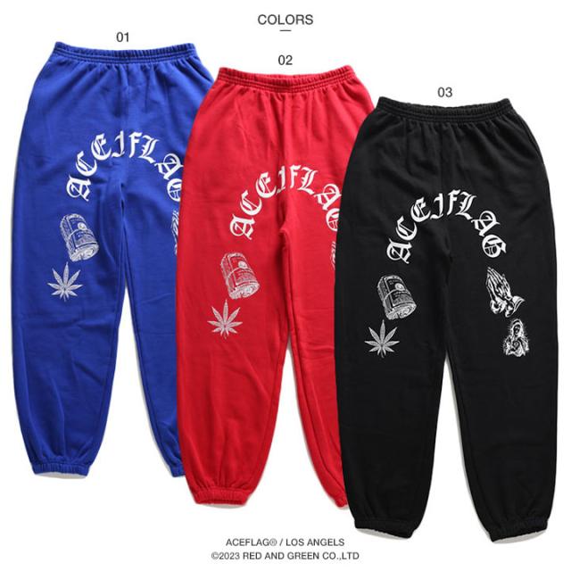 ACEFLAG スウェットパンツ 裏パイル メンズ 全3色 大きいサイズ エースフラッグ スウェット ロングパンツ ゆったり おしゃれ 総柄 ドル柄 大麻 祈り手 マリア b系 ヒップホップ ファッション ダンス ストリート系 ブランド AF-LP-SW-034