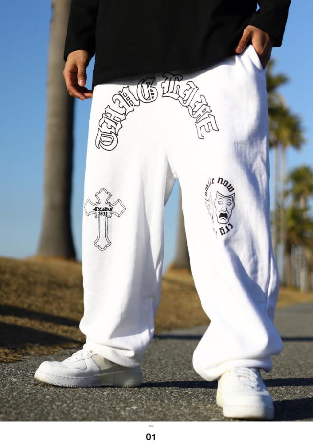 【オススメ】L-3XL かっこいい ストリート系スウェットパンツ ボトムス オールドイングリッシュ 2ファイス 白パンツ アメリカ ボトム ギャング ストリートギャング 春夏秋冬用