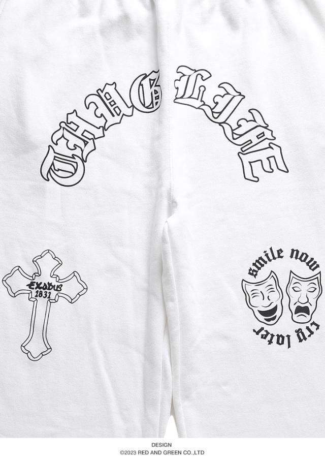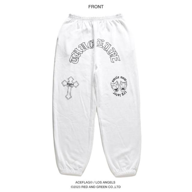 ACEFLAG スウェットパンツ メンズ 白 大きいサイズ エースフラッグ スウェット ロングパンツ ゆったり おしゃれ 総柄 THUG LIFE サグライフ 十字架 クロス 2フェイス b系 ヒップホップ ファッション ストリート系 ブランド AF-LP-SW-036