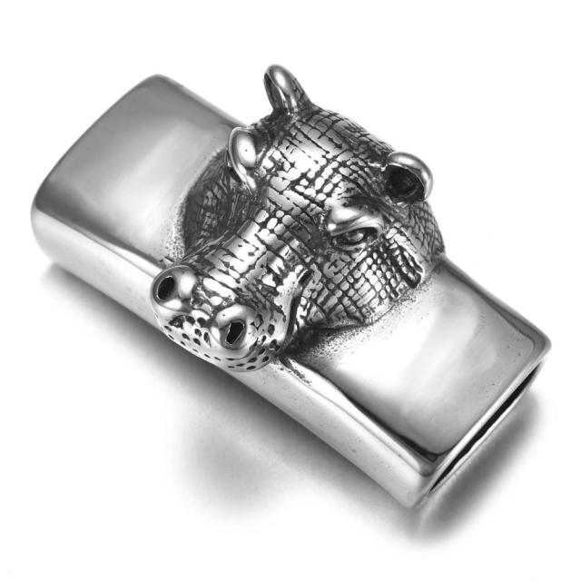 河馬(かば)をモチーフにしたかっこいい12ミリx6ミリの平らな皮ひもを通せるサージカルステンレス316L製のステンレスパーツ。