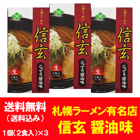 札幌ラーメン 信玄 醤油 ラーメン 送料無料 札幌 ラーメン 信玄 正油 生ラーメン しんげん 醤油 ラーメン しょうゆ ラーメン 有名店 生麺 こってり醤油 味 化粧箱 1個(2食入)×3 サッポロラーメン 正油 麺類 ラーメン