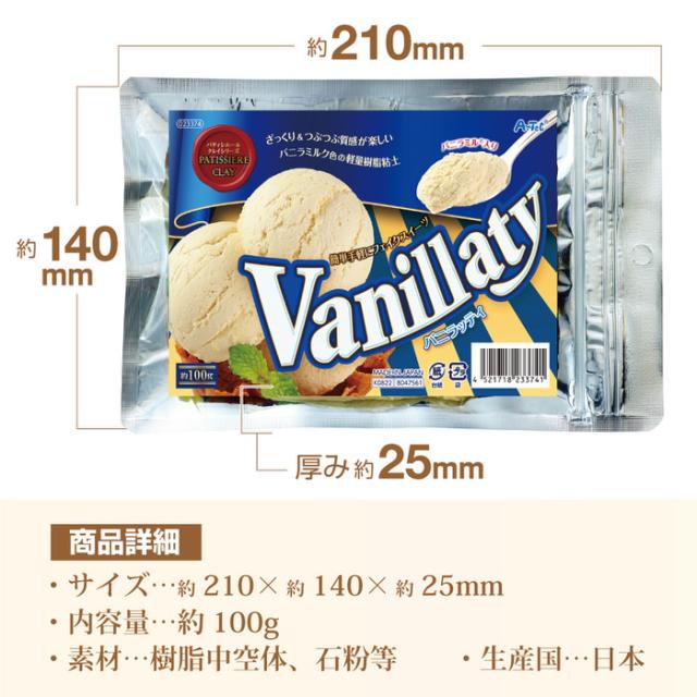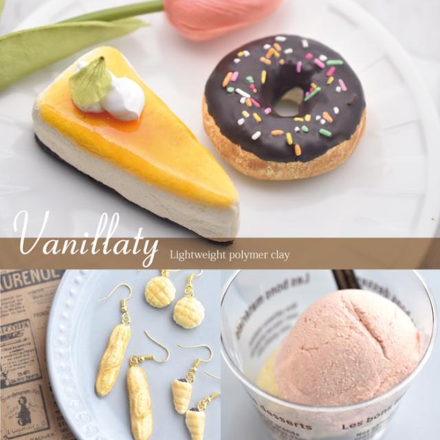 バニラッティは バニラアイス や 焼き菓子 などの質感をリアルに表現できる粒(バニラミル)入りの 軽量樹脂粘土 です。