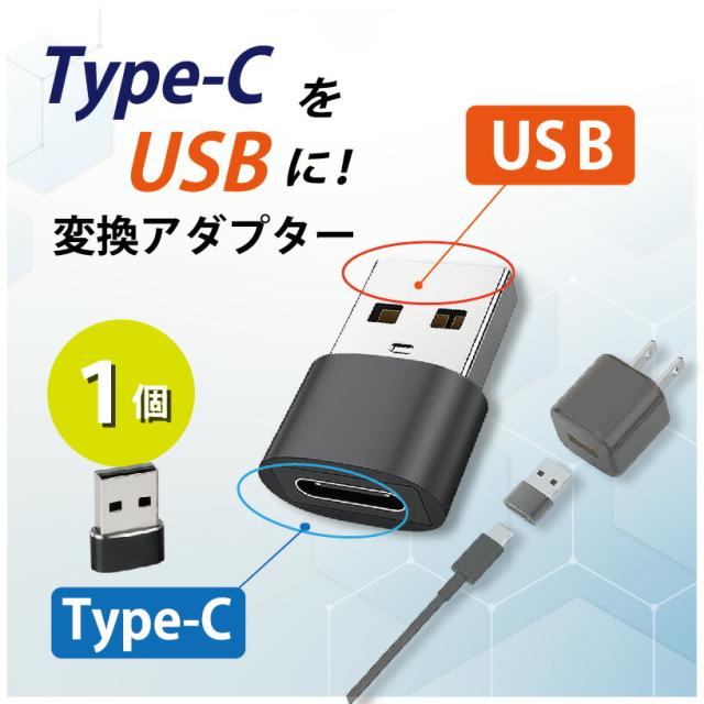 Type-C USB 変換アダプター 1個 タイプC 変換コネクター 充電 データ転送 Type-CをUSB-Aに変換