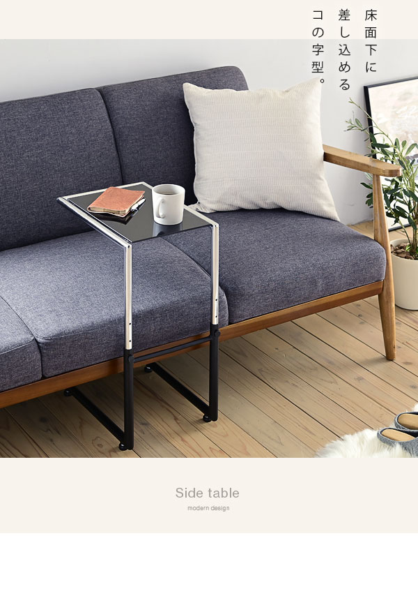ベッドサイドテーブル スリム サイドテーブル キャスター 付き ベッド横テーブル ガラス コの字 ブラック ソファ サイドテーブル ベッド脇 高さ 調整 新生活 引越し 家具 沖縄・離島は別途追加送料見積もりとなります メーカー直送品 KKS-0027