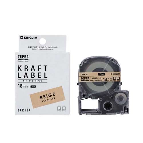 キングジム PRO テープカートリッジ クラフトラベル (18 幅/ベージュ色/黒文字) SPK18J返品種別A