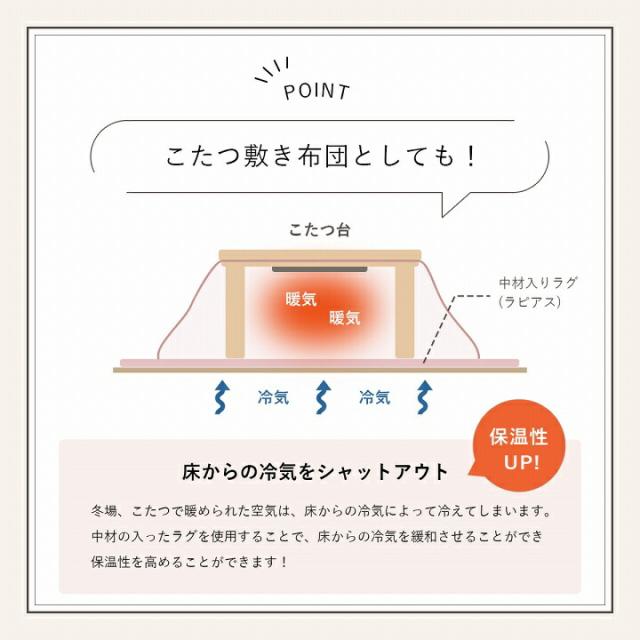 ■ 大人かわいいシンプルデザインのラピアスシリーズです。ふわふわな極上のタッチ感で暮らしに幸せをお届けします。 ■ 表地にはフィラメント糸でふわふわなフェイクファーを使用しています。毛羽立ちが少なく、耐久性にも優れています。 ■ フェイクファーは毛が抜けにくいマイヤー織りで、毛足の長さは長すぎず使用感がほどよい約15mmを採用しました。 ■ 表地は、抗菌防臭加工を施しており安心、清潔にご使用いただけます。 ■ スタイリッシュで高級感のあるオーバーロック加工を施しております。 ■ ホットカーペットや床暖房にも対応しているので、年中ご使用いただけます。 ■ 裏面はフローリングにやさしい不織布貼りです。滑り止め加工も施しているのでずれにくく快適です。 ※ 本商品は生産時期により同色でも若干色味が異なる場合がございます。また、画面上のカラーはご使用ブラウザやモニターの設定により、実物とは若干異なる場合がございます。あらかじめご了承の上、ご注文をお願いいたします。 ※ フェイクファーは、毛足の向きによって色の見え方が変わるのが特長です。 ※ 使い始めは遊び毛が出る可能性がございますので、ご使用前に掃除機でやさしく吸い取ってください。 ※ 滑らかな肌触りが特徴の製品です。ご使用中の転倒にご注意ください。 ※ 掲載写真は表記サイズと異なる場合がございます。 |