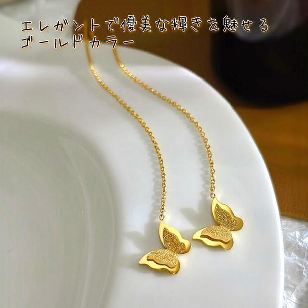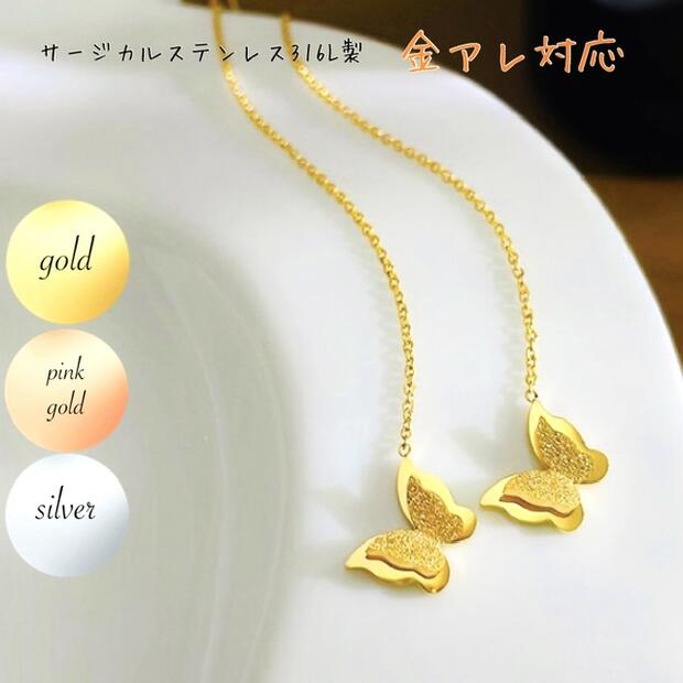 サージカルステンレスピアス 金属アレルギー対応 蝶々ピアス アメリカン 揺れる ステンレス ピアス チェーン 蝶々ドロップピアス ステンレスピアス レディース ピアス 18金コーティング ピンクゴールド ゴールド シルバー 人気 流行 カジュアル かわいい おしゃれ プレゼント