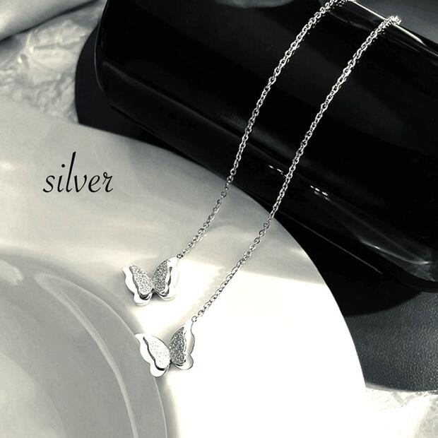 アメリカン 揺れる ステンレス ピアス チェーン 蝶々ドロップピアス、大切な人へのプレゼントにもピッタリですね♪