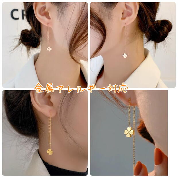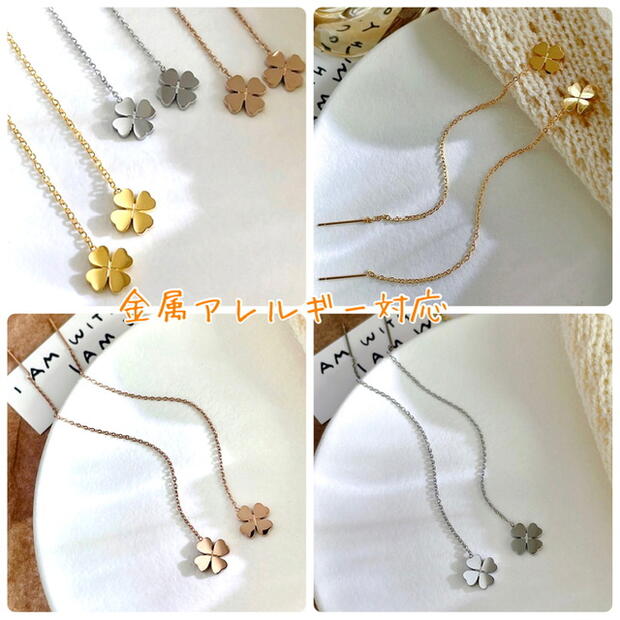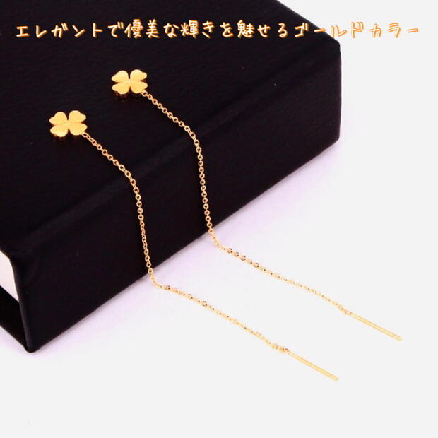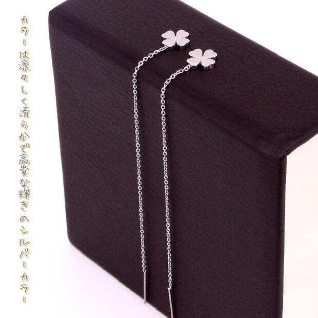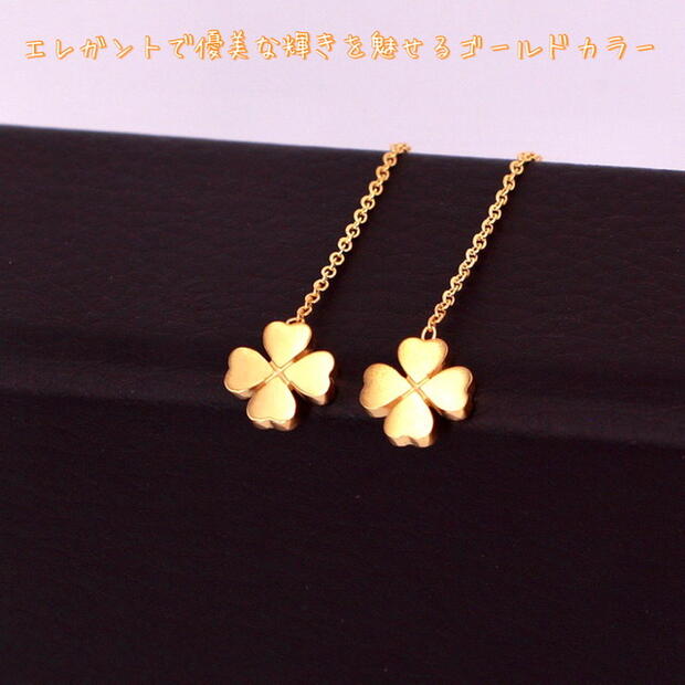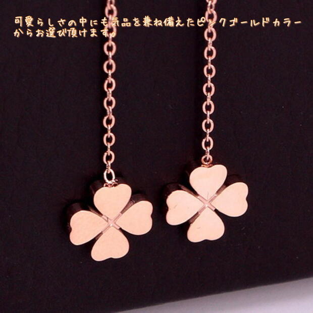 アメリカン 揺れる ステンレス ピアス チェーン 幸せの四つ葉のクローバーピアス♪幸運も呼びつけるクローバーモチーフで、女度あげたいならこれ一つで十分〜。
