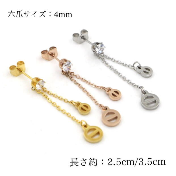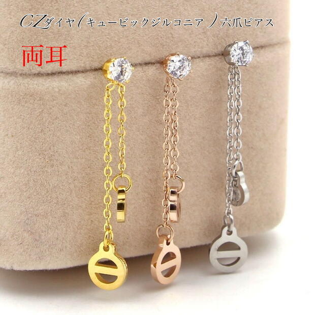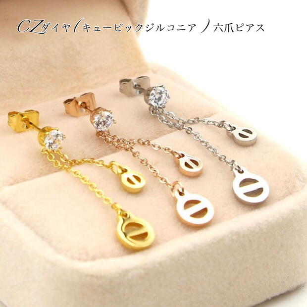サージカルステンレス316L製 ピアス 金属アレルギー対応 CZダイヤ(キュービック・ジルコニア) 六爪ピアス スタッド ゆれる ピアス 18K ピンクゴールド ゴールド シルバー ステンレスチェーンピアス 高級感 華奢 上品 存在感 ご褒美 カジュアル かわいい おしゃれ プレゼント