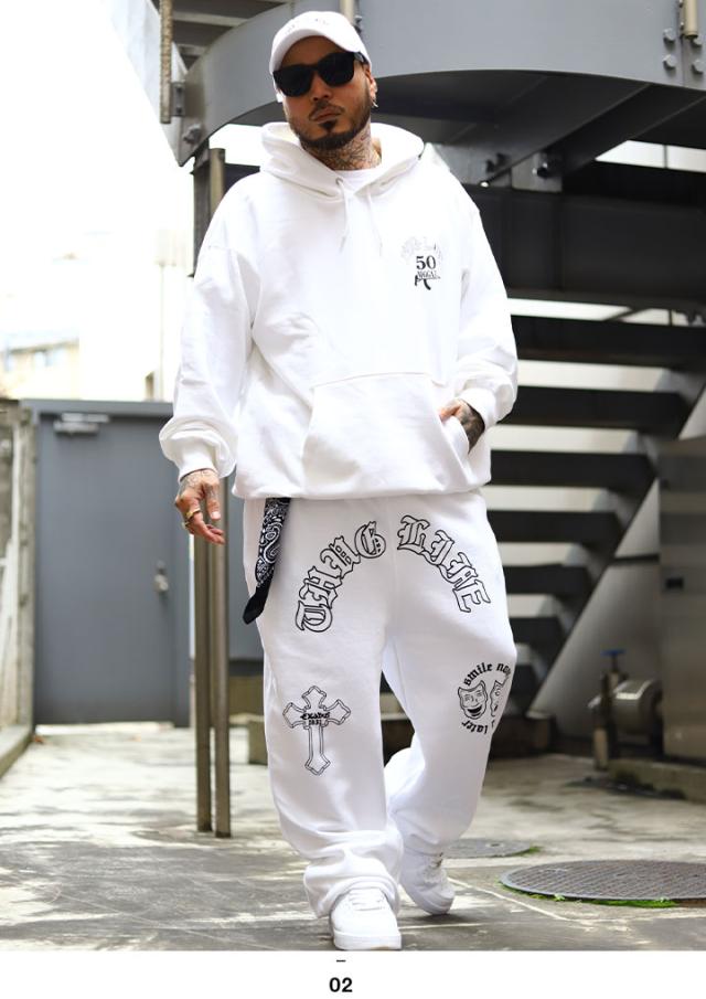 かっこいい ストリート系セットアップ ビッグシルエット 十字架 クロス トップス ボトム パンツ 上下 メンズ ギャング ストリートギャング ダンス スケボー メンズファッション