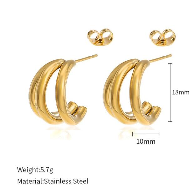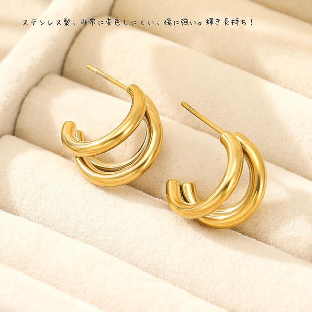 サージカルステンレスピアス フープピアス3連リング 月甲 シンプル ピアス 金属アレルギー対応 スタッドピアス 両耳 18mm 18K ゴールド ステンレス ピアス つけっぱなし ニッケルフリー ピアス 人気 流行 きれいめ 上品 華奢 大人 カジュアル かわいい おしゃれ 誕生日 新作