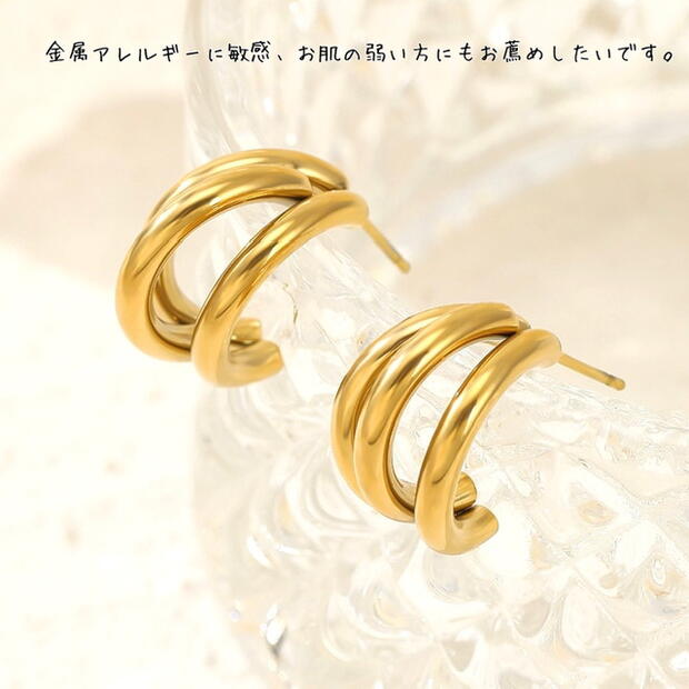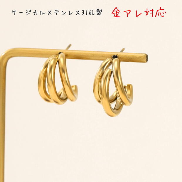 金属アレルギー対応 月甲フープピアス3連リング シンプル ピアス ♪