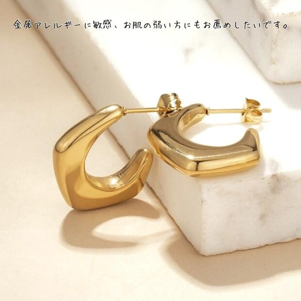 サージカルステンレス316L製 フープピアス スクエア リングピアス シンプル
