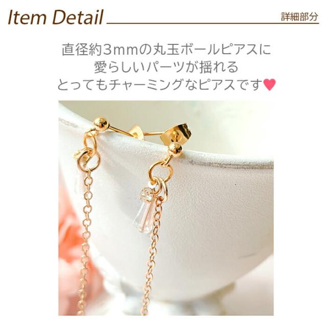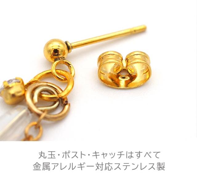 | 金属アレルギー対応ステンレス(ピアス本体・キャッチ)、アクリル、合金(チェーン) |