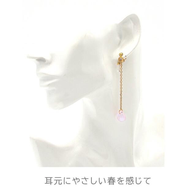| 桜の花びらが揺れる ロングチェーン ピアス 金属アレルギー対応ステンレス製 |