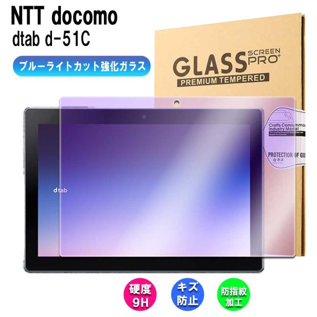 ドコモ dtab d-51C 10.1インチ ブルーライトカット ガラスフィルム 保護ガラスフィルム 硬度9H ラウンド加工処理 飛散防止処理 耐久 0.3mm 薄型 指紋防止