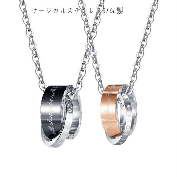 新作 サージカルステンレス ネックレス 金属アレルギー対応 永遠の愛 リングネックレス メンズ レディース 男性 女性 お揃い ネックレス ステンレス チェーン ジルコニア LOVE ピンクゴールド シルバー ブラック 2連リング カジュアル クリスマス 記念日 誕生日 プレゼント