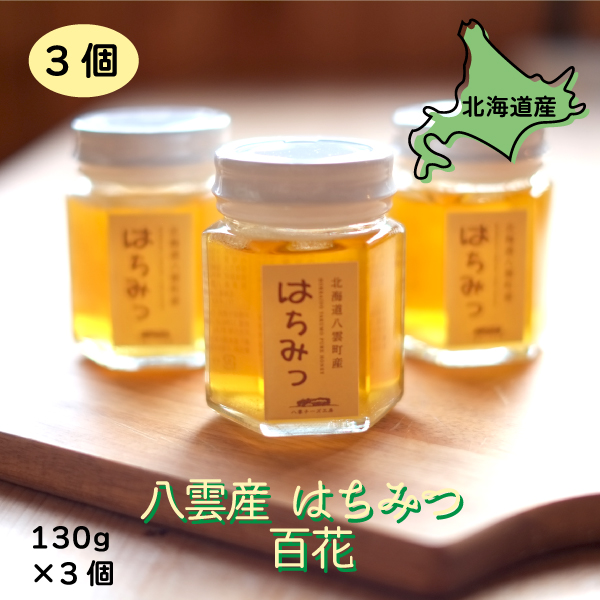 はちみつ 八雲産 はちみつ 百花 3個 130g×3 送料無料 北海道産 北海道グルメ ご当地グルメ 八雲チーズ工房 お取り寄せグルメ 美味しい 絶品 ごちそう ギフト 贈り物 詰め合わせ ハニー HONEY 【ym_joa】