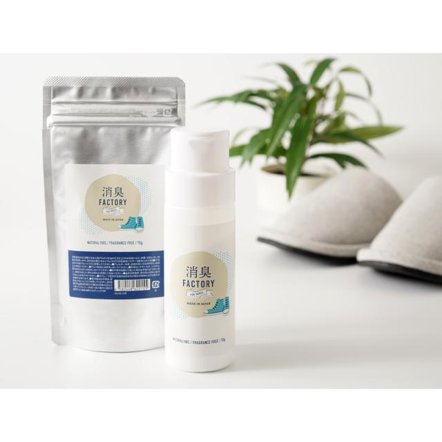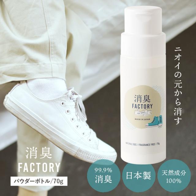 【商品レビューでポイント+5%】 消臭FACTORY パウダーボトル 靴の消臭剤 消臭FACTORY パウダー ボトルタイプ 消臭 粉 除菌 靴の消臭 70g 日本製 国産 天然成分 におい 臭い 臭い消し フットケア 角質 足のにおい 消臭剤 天然素材 靴用 靴下 除菌 RIORES