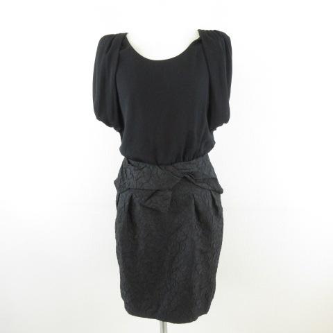 【中古】カエン kaene 膝丈ワンピース ドレス ノースリーブ コクーン 刺繍 黒 2 *E593 レディース