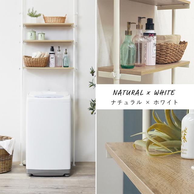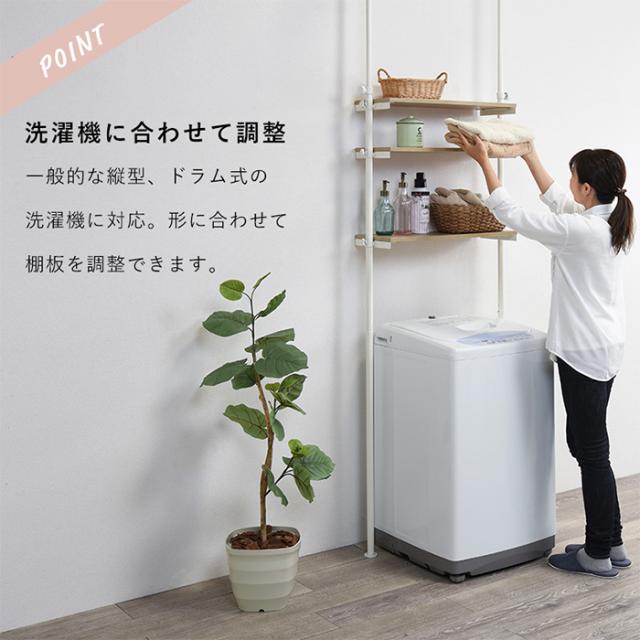 突っ張り洗濯機ラック オープンラック KTR-3153 シンプル 幅70cm スチール 省スペース デッドスペース活用 棚板付き 棚3段 設置簡単 高さ調整可能 水回り