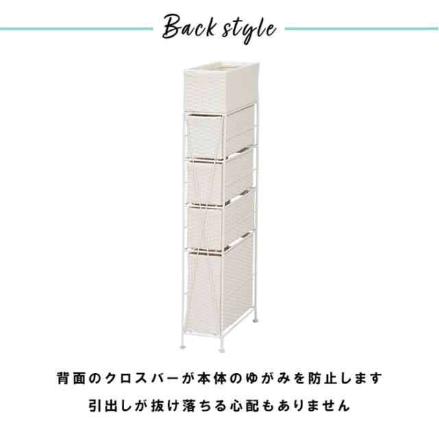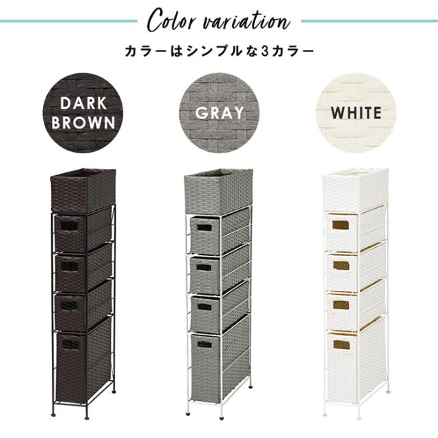 ランドリーラック 収納かご ランドリー RAN-2407 おしゃれ ラタン 棚 4段 角型 収納 完成品 隙間 スリム 通気性 バスケット薄型 シンプル チェスト 洗面所