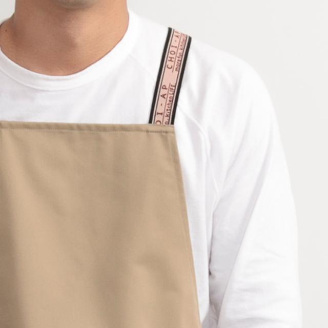 ボタンや腰ひもが無く、肩ひもにサッと両腕を通すだけで着られる「ちょいエプ」。ちょっとエプロンをしたい時に、わざわざ長いひもをたどって結ぶなどのわずらわしさから解放され、サッと着用できるのが便利で嬉しい。料理中はもちろん食事中にソース等の飛び跳ねを防ぐのにもお使いいただけます。