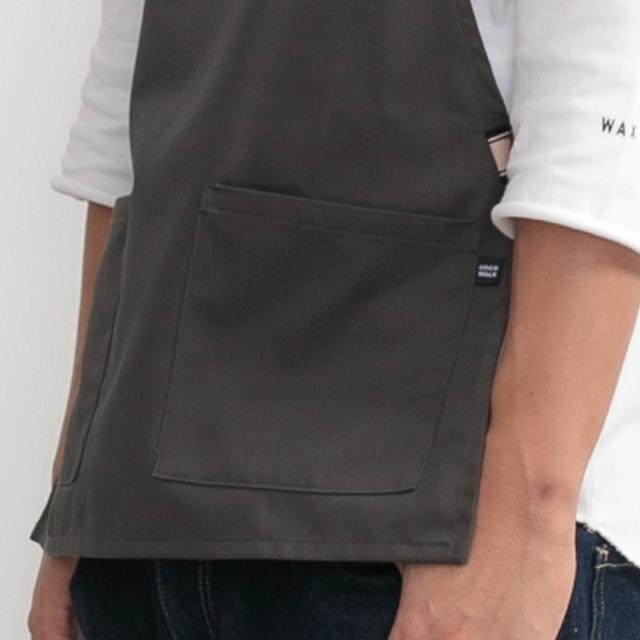 エプロンの丈は72cmで一見短く見えますが動きやすく、胸当ての部分は通常のエプロンとほとんど変わらないので、水はねなどからもしっかりとカバーします。また、丈が短いので、キッズ用エプロンとしても使用できます。