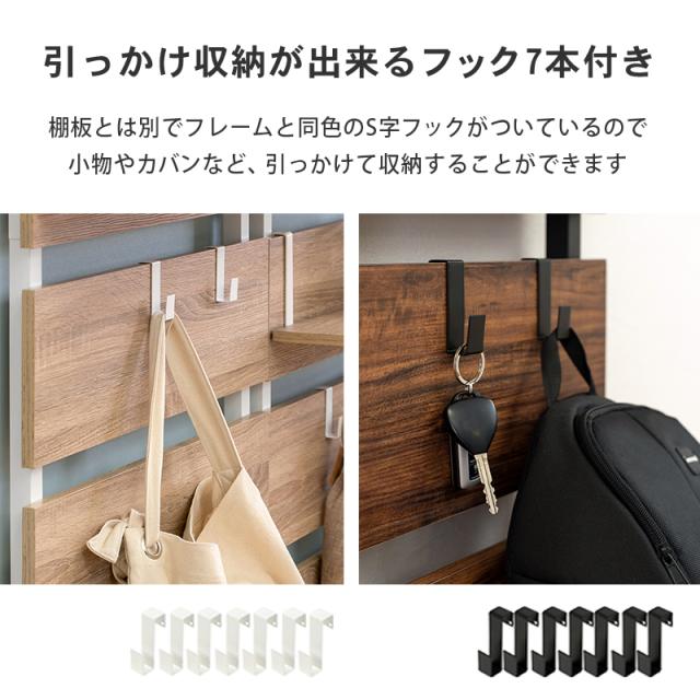 棚板:(ブラウン/ブラック)プリント紙化粧繊維板、(ナチュラル/ホワイト)プリント紙化粧繊維板、(ホワイト/ホワイト)メラミン樹脂化粧繊維板、(ブラック/ブラック)プリント紙化粧繊維板
