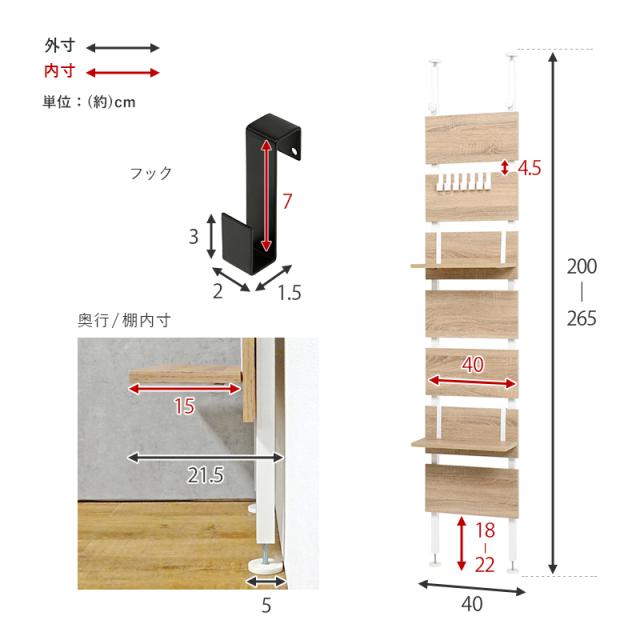 オープンラック 突っ張りウォールラック KTR-3146 シンプル 幅40cm スリム 省スペース デッドスペース 棚板付き 壁面収納 ディスプレイ リビング トイレ