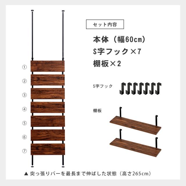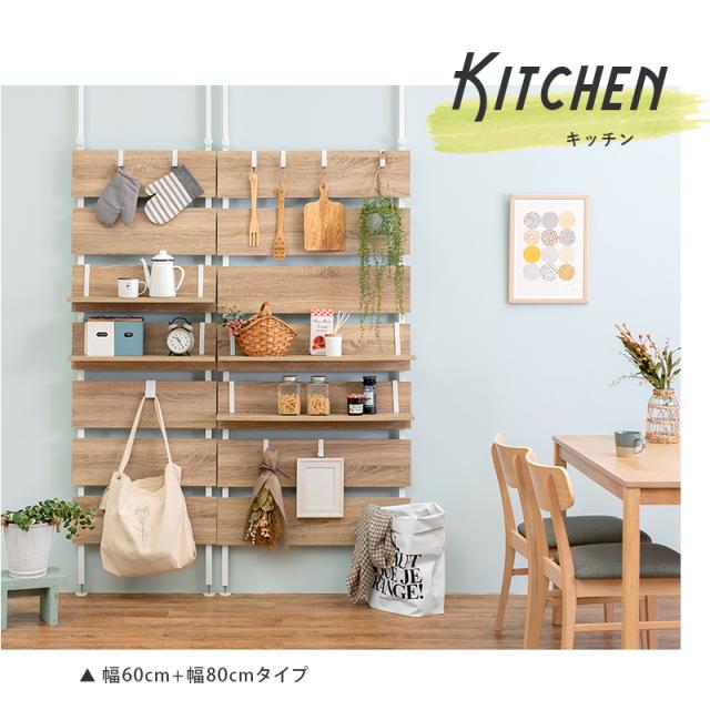 オープンラック 突っ張りウォールラック KTR-3147 シンプル 幅60cm スリム 省スペース デッドスペース 棚板付き 壁面収納 ディスプレイ リビング トイレ